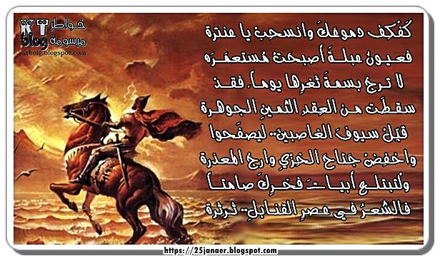 كَفْكِف دموعَكَ وانسحِبْ يا عنترة فعـيـونُ عبلــةَ أصبحَتْ مُستعمَــرَة
